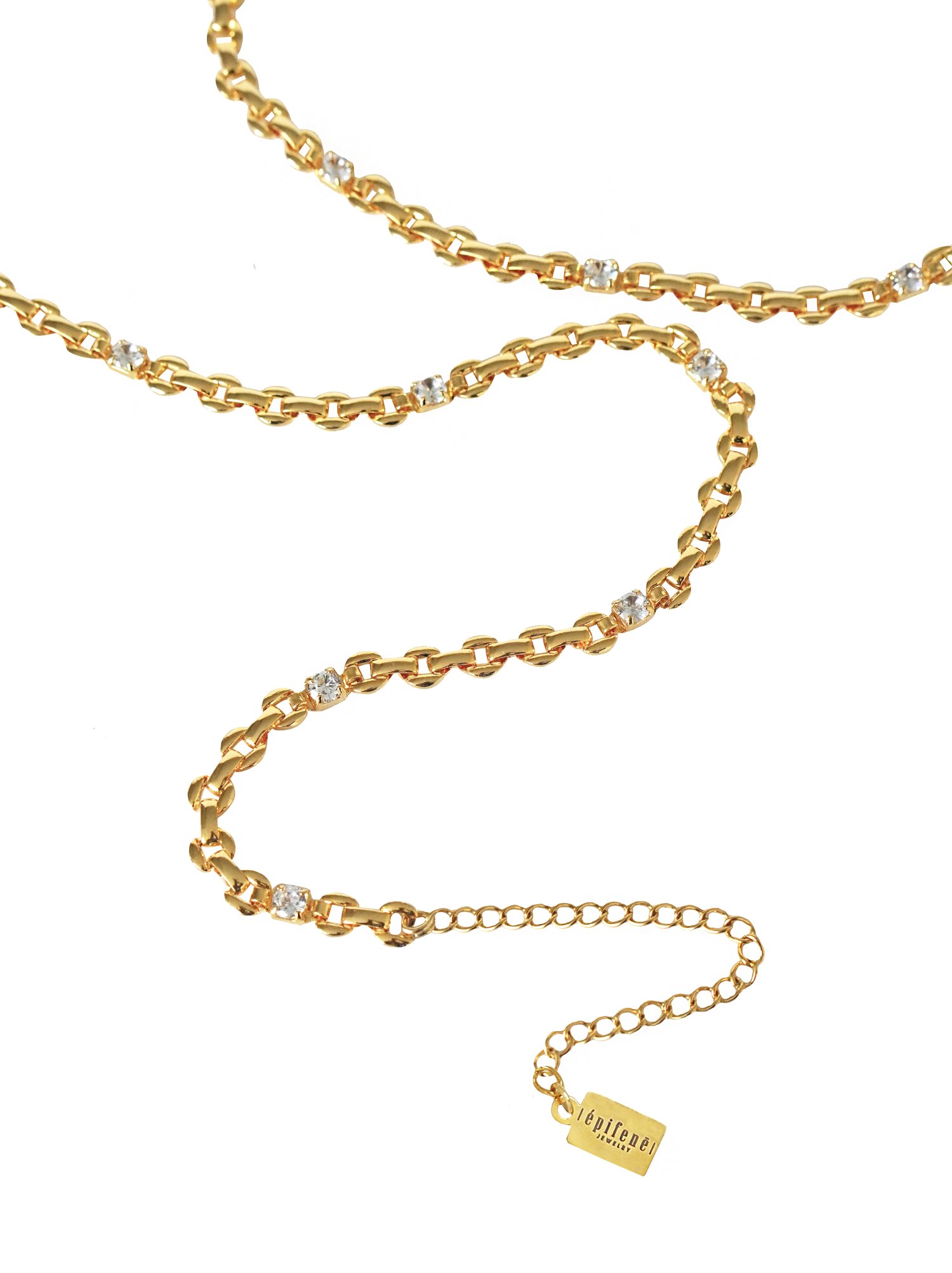 • Belly chain with cubic zirconia details.